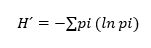 Para estimar la diversidad de especies se utilizó el índice de Shannon-Wiener (H') (Shannon, 1948):