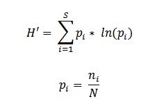 Para determinar la diversidad alfa se calculó el Índice de Shannon-Wiener con la expresión descrita por Shannon (1948) (Ecuación 1):
