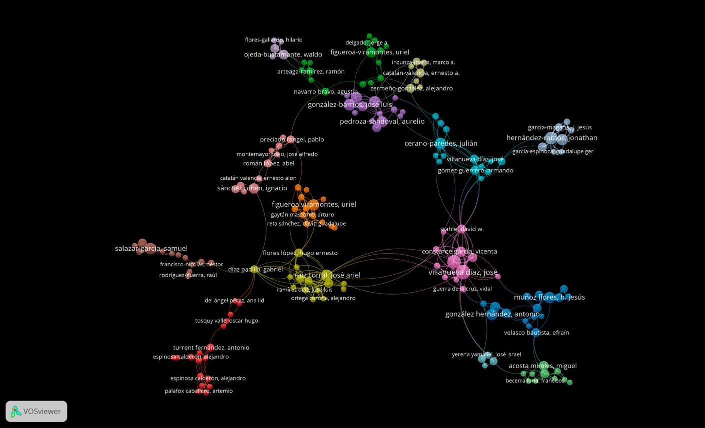 Regarding co-authorship networks, a close collaboration between INIFAP researchers and researchers from other institutions and 13 organizations ―mainly national, such as Universidad Autónoma Chapingo (Chapingo Autonomous University) and Universidad Autónoma Agraria Antonio Narro (Antonio Narro Agricultural Autonomous University) ― was identified. In addition, there is some interrelation with El Colegio de la Frontera Sur (Southern Border College) and the Autonomous Universities of Nayarit, Nuevo León, Chihuahua, and Guadalajara, and the Technological Institute of Sonora, among others (Figure 11).