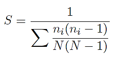 Simpson (S). Mide la probabilidad de que dos individuos seleccionados al azar en las parcelas sean de la misma especie.