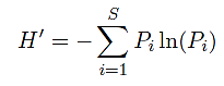 Shannon-Wiener (H´). This index measures the average degree of uncertainty to predict the species to which an individual taken at random within the plots belongs. This index assumes that individuals are selected at random and that all species are represented in the sample. The values that it produces are close to zero when there is only one species, and to the natural logarithm of S, when all species are represented by the same number of individuals.