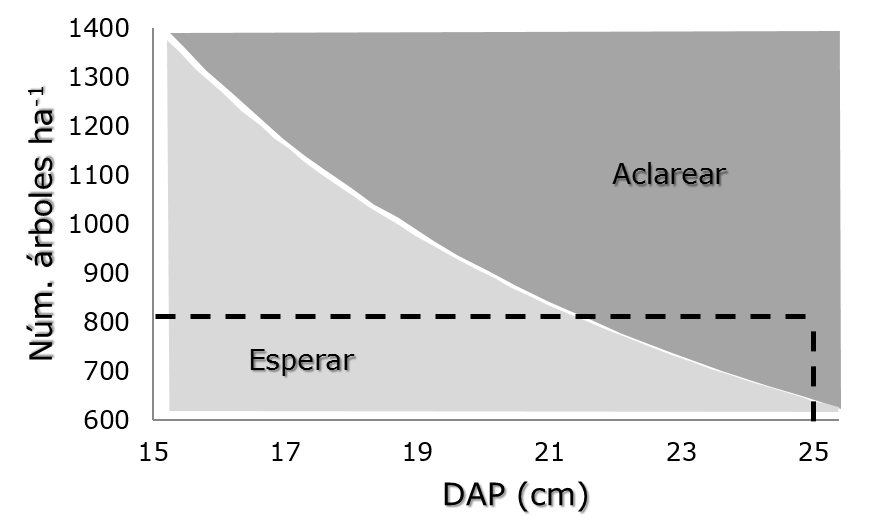 Figura 3. Gráfica de decisión para “aclarear o esperar”.