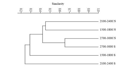 Figure 3. Dendrogram of similarity based on a Bray-Curtis analysis between areas with different altitudinal ranges.