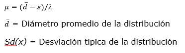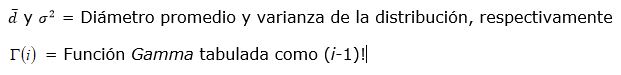 Los parámetros de la FDP Beta se calcularon por el método de momentos (Loetsch et al., 1973). Los parámetros se obtienen del primer y segundo momento de la distribución (diámetro medio aritmético y la varianza , respectivamente) mediante las expresiones siguientes:
