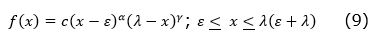 La expresión general de la FDP Beta para una variable aleatoria continua sigue la expresión siguiente: