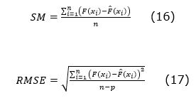 Los valores del SM y REMC se estimaron para cada FDP como el promedio de las frecuencias relativas de cada clase diamétrica (se tabuló en clases de 2 cm) para cada sitio de muestreo y rodal. Para validar si las frecuencias acumuladas empíricas y teóricas son similares, se usó la prueba de Kolmogorov-Smirnov (KS) (Sokal y Rohlf, 2012). La diferencia máxima en valor absoluto más notable entre ambas frecuencias estará dada por el valor Dnde la expresión siguiente: