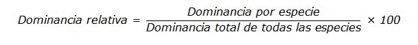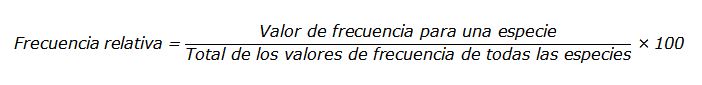 Los valores de dominancia, densidad y frecuencia, así como los de valor de importancia por especie se obtuvieron con las siguientes ecuaciones (Stiling, 1999).
