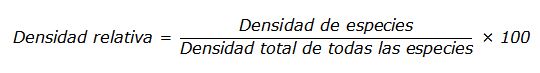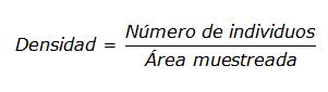 La densidad se define como el número de individuos de una especie que ocupan un área determinada y se calcula de la siguiente manera:
