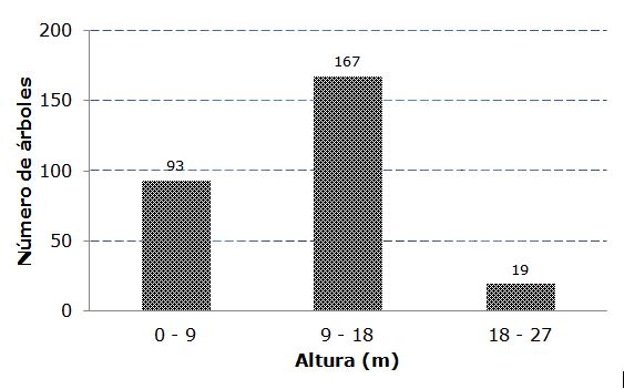La estratificación vertical se definió al medir la altura de todos los árboles presentes en las UM, desde la base del tallo hasta el ápice. Para tal fin se utilizó un altímetro Haga (GmbH & Co D-90429, Germany).