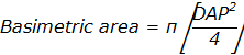 The basimetric area of the trees (AB) was obtained by the following formula: