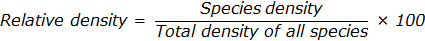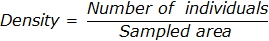 Density is defined as the number of individuals of a species that occupy a given area and is calculated as follows: