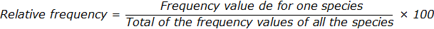In order to know how the species are distributed, it is necessary to calculate the frequency, by counting the sampling units where they were found: