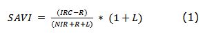 In each original image cropped to the boundaries of the study area, the R (red) and NIR (near infrared) bands of each date were used in the generation of the SAVI index with the Map Algebra module of Quantum GIS© 3.16 (QGIS Development Team, 2020); vegetation indexes were generated for each satellite image (Landsat 1, 2, 5 or 8, depending on the date) and band number (b) of the electromagnetic range corresponding to the red (R) and near infrared (NIR) bands to estimate the Soil Adjusted Vegetation Index (SAVI). Formula (1) was applied in order to calculate the index for each date.