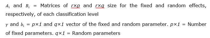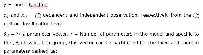 The mathematical structure in matrix form of the model to fit under MEM was based on Bronisz and Mehtätalo (2020) and Chenge et al. (2021), which for a nonlinear model was expressed as: