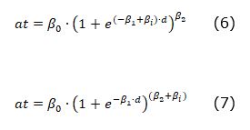 at = Total height (m); d = Normal diameter (cm); e = Base of the neperian logarithms; βi = Parameters to be estimated.