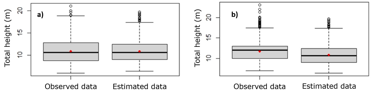 In carrying out timber forest inventories, d and at are the two most important variables (Liu et al., 2017), but measuring at of all trees is very costly in terms of time and resources. In addition, it is the variable in which the greatest errors occur during its indirect measurement (Hunter et al., 2013). In contrast, the measurement of d is relatively simple, accurate and less expensive (Larjavaara and Muller-Landau, 2013).