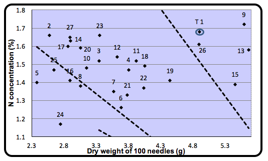 Weetman, G. F. 1989. Graphical vector analysis technique for testing stand nutritional status. In: Dyck, W. J. and C. A. Mees (eds.). Research Strategies for Long-term Site Productivity. Research Institute, New Zealand Bulletin. Proceedings, IEA/BE A3 Workshop. IEA/BE A3 Report No. 8. Forest. Seattle, WA USA. pp. 93-109.