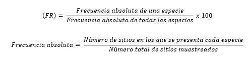 Donde: pi = Abundancia relativa ln = Logaritmo base 10 |