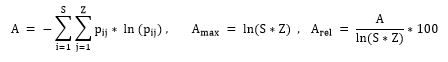 Donde: ni, j = Número de individuos de la misma especie i en la zona j N = Número total de individuos. El valor de A se estandariza con la ecuación Arel.