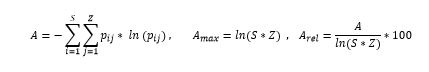 where ni, j = Number of individuals of the same i species in j zone N = Total number of individuals. The value of A is standardized with the equation Arel.