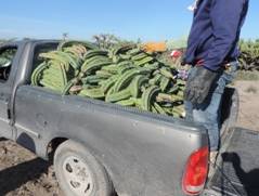 Tercera etapa: establecimiento en viveros rústicos. Se establecieron mil esquejes en cinco viveros rústicos, considerados así porque se tenía una sombra natural bajo árboles y otros garambullos de mayor porte, con capacidad de 200 ejemplares en cada uno; estos viveros estuvieron a cargo de cinco mujeres que recolectan el fruto de garambullo cotidianamente. Las condiciones de suelo y manejo fueron similares en los cinco viveros. Se les aplicaron riegos quincenales ligeros y deshierbes manuales.