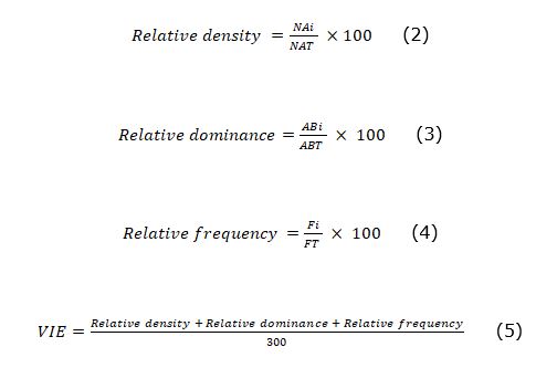 To describe the diversity of tree species and their ecological importance, the following variables were calculated from the mensuration information recorded at the sampling sites.