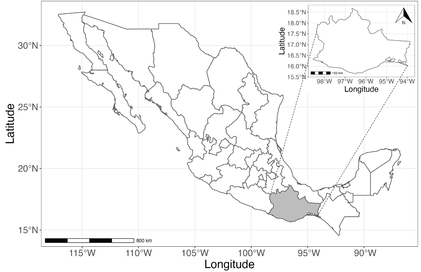 Figure 1. Geographical location of Oaxaca state in Mexico.