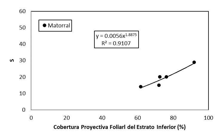 La relación entre cobertura aérea y riqueza de especies puede determinarse para vegetación clímax no perturbada (Sánchez-Sánchez et al., 2021), aunque su generalización hacia estados de sucesión o perturbación es una tarea pendiente.