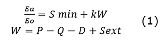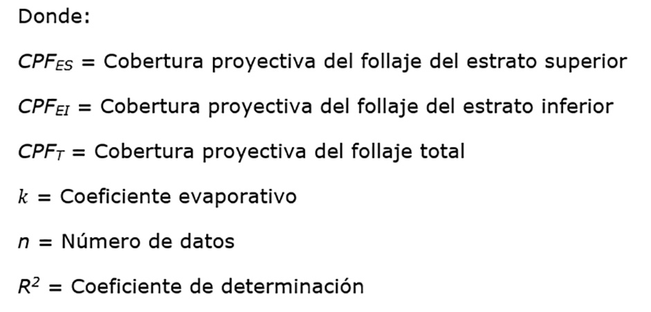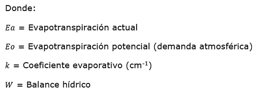 Specht (1972) planteó que la vegetación clímax perenne siempre verde aprovecha la totalidad del agua disponible a través del balance del agua en el suelo y la demanda atmosférica, modulada por el coeficiente evaporativo k, de tal forma que :