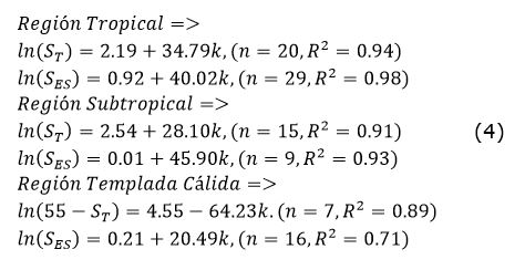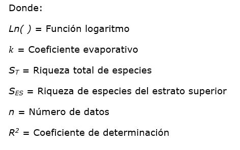 Specht et al. (1991) y Specht y Specht (1993) desarrollaron relaciones entre el coeficiente evaporativo k (cm-1) y la diversidad de especies en comunidades clímax: