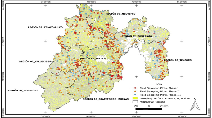 Figure 1. Sampling phases based on the stratification of land use and vegetation homologated for the State of Mexico.