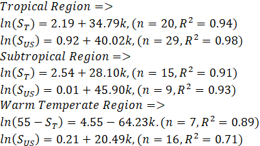 Specht et al. (1991), and Specht and Specht (1993) developed relationships between the evaporative coefficient k (cm-1) and the species diversity in climax communities: