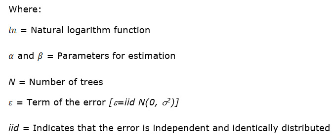 The adjustment of the Yoda equation with OLS was carried out with the R software (R Core Team, 2022), version 4.2. In order to fit the same function with the SFR technique using maximum likelihood, the Frontier package of the R software was utilized.