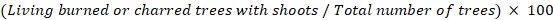 Trees with shoots. The percentage of individuals with shoots was calculated for both burned and charred live trees, using the Equation: