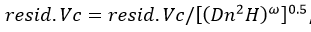 , en la que el valor del parámetro ω proviene de la regresión lineal del logaritmo natural de los residuales en función de la variable combinada (