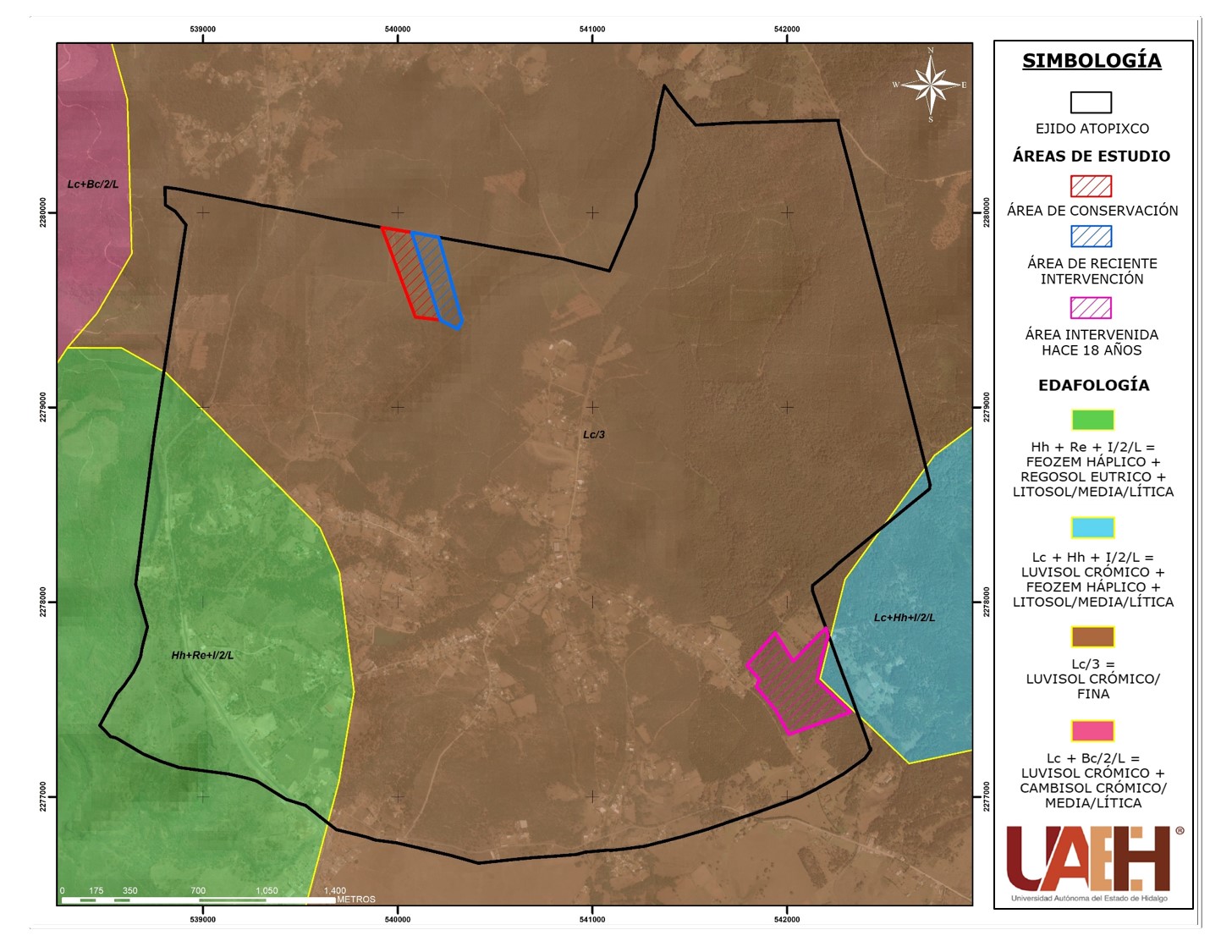 Figura 2. Mapa de edafología en relación a las áreas de estudio.