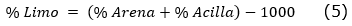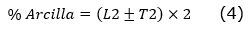 Para obtener la granulometría en porcentajes de arcilla, limo y arena se emplearon las ecuaciones siguientes (Silva et al., 2020):