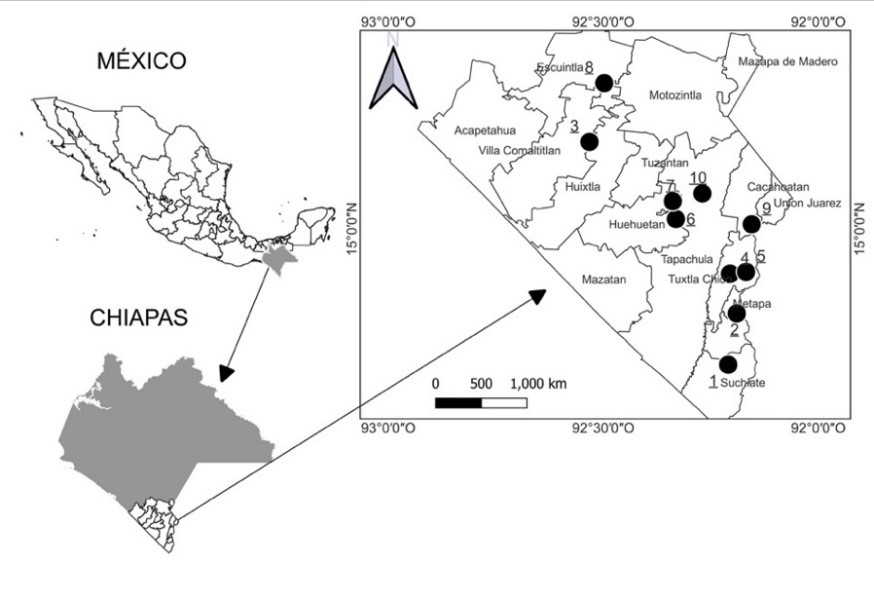 Servicio Meteorológico Nacional (SMN). 2023. Normales Climatológica por Estado: Chiapas. https://smn.conagua.gob.mx/es/informacion-climatologica-por-estado?estado=chis. (24 de noviembre de 2023).