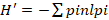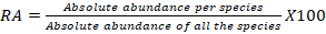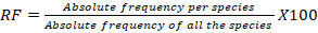 Pi = Number of individuals of each species divided by the total number of individuals of all species recorded
