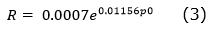 Para estimar el valor R del radio de máximo viento (en km), se empleó la siguiente ecuación (SSPC-Cenapred, 2021):