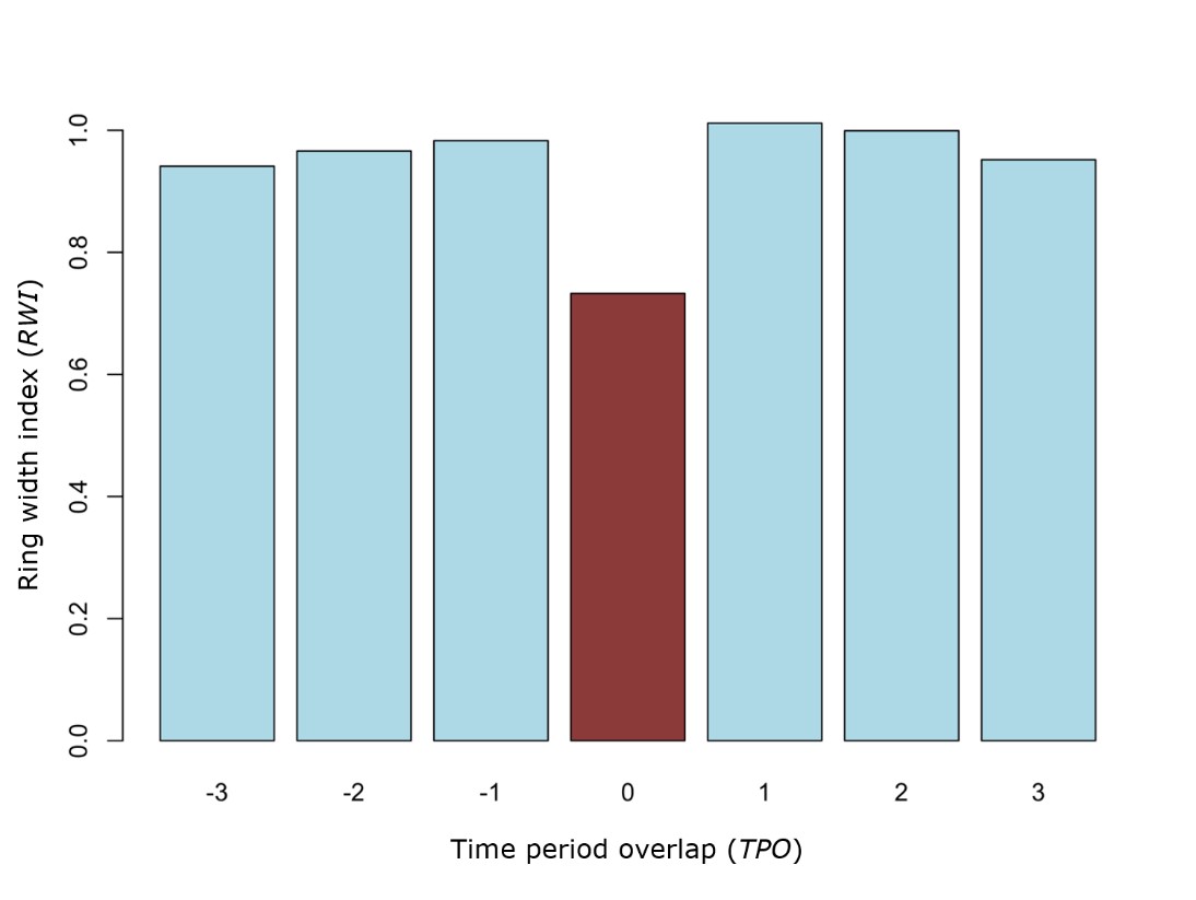 Years that registered low RWI (Figure 3) agree with low site records of the Palmer drought index (PDSI) (Stahle et al., 2016). They also coincided with the lowest records of the standardized precipitation-evapotranspiration index (SPEI) (Vicente-Serrano et al., 2010) and the superposed epoch analysis (SEA) (Figure 8).