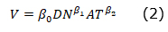 Para la estimación del volumen total árbol y fustal por especie se ajustó la expresión de Schumacher-Hall (Schumacher, 1933) (Ecuación 2).