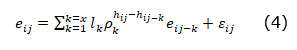 Dado que se detectó correlación en las observaciones, lo cual quebranta el principio de independencia de los errores, se aplicó el método de Mínimos Cuadrados Generalizados no Lineales (Huang et al., 2000); el término del error se expandió mediante un modelo autorregresivo continuo de orden x [CAR(x)] (Ecuación 4).