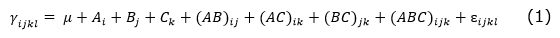 = Interacción de i-ésimo nivel del factor A con j-esimo nivel del factor B con k-esimo nivel del factor C