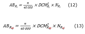 15. El área basal por especie (ABRi,j) se obtiene con la Ecuación (13) y el área basal global (ABRi) se calcula con la (20).