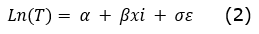 Ln(T) = Logaritmo natural del tiempo de fallo acelerado (prendimiento y mortalidad)