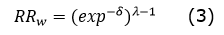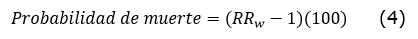 La razón de riesgo de Weibull (Ecuación 3) y la probabilidad de muerte (Ecuación 4) se calcularon con las ecuaciones descritas por Pérez-Luna et al. (2021).