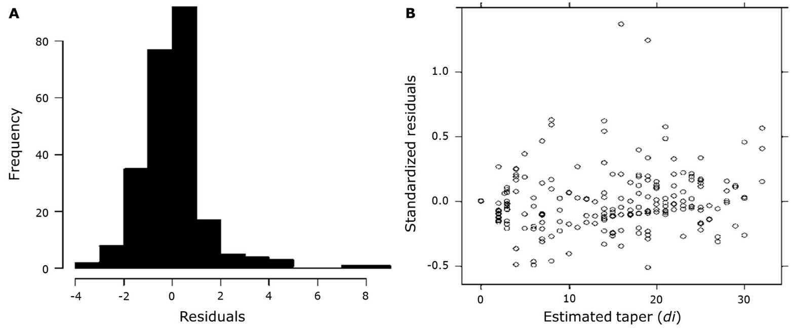 Table 2. Parameter values and goodness-of-fit criteria for nonlinear least-squares taper functions.