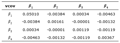 Table 4. Variance-covariance matrix (vcov) of the MEM adjustment of Clutter's taper expression.