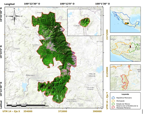 Keywords: Multitemporal analysis, sacred fir forest, conservation, Danaus plexippus L., illegal logging, environmental services.